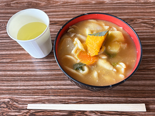 麺を茹でていただき、待ちに待ったほうとうができ上がりました。