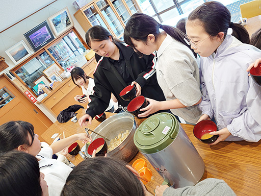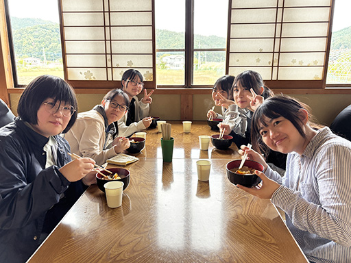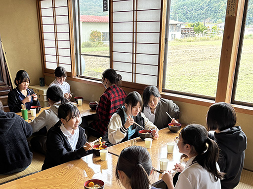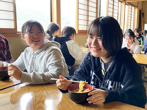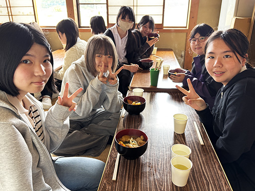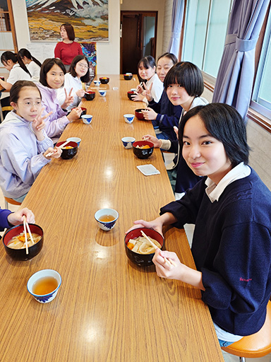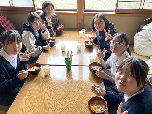 いただきますをすると、「美味しい!」とあちこちから聞こえてきて、おかわりもたくさんしました。ほうとうと一緒に煮込まれていたお野菜も自家栽培だと聞き、その美味しさに皆感激していました。心も体もあたたまりました。