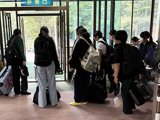 お部屋を片付けて、お世話になった山荘の清掃が終わり、荷物を持ってバスに乗り込みます。