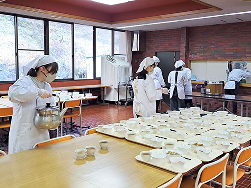 山荘に到着し、入寮式の後、昼食をいただきました。