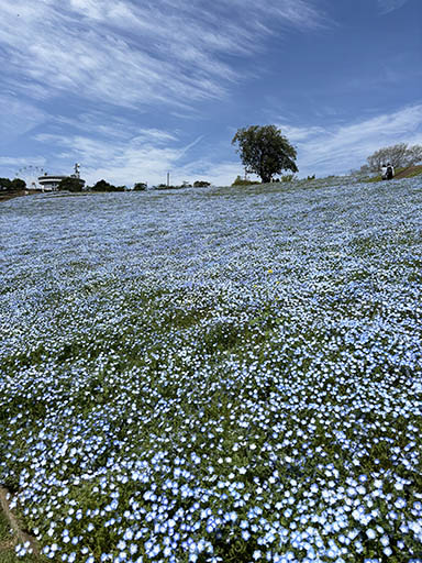 マザー牧場に無事到着いたしました。少し風が強いですが、入ってすぐにネモフィラ畑がお迎えしてくれました。