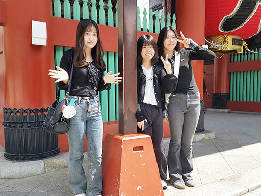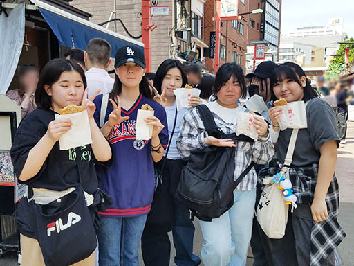 仲見世の活気を楽しみつつ、浅草寺を訪れるグループが多いです。おみくじを引いたり、浅草グルメを楽しんだり、高校3年生として残り少なくなってきた行事を存分に楽しむ姿が見られます。