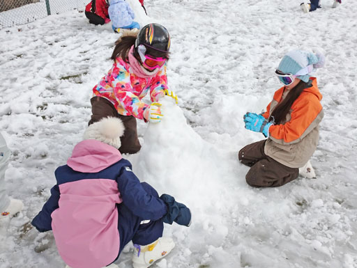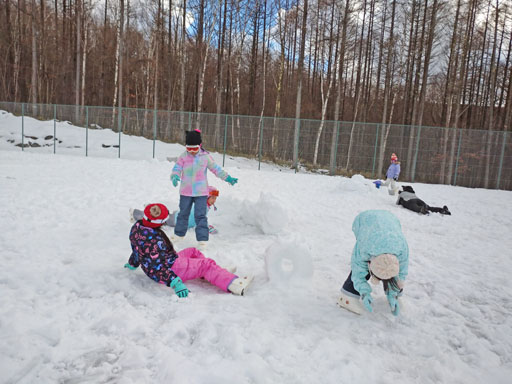 午後の自由時間、テニスコートに積もっている雪で、雪遊びをしました。