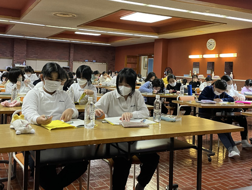夕食をいただいてから、今日の思い出をしおりに記入しました。