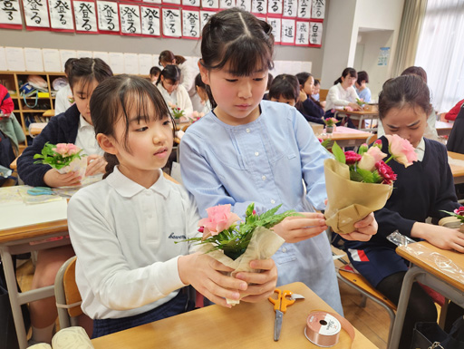 NEWS TOP NEWS 5・6年生 フラワーアレンジメント 2024.03.05 5・6年生 フラワーアレンジメント 令和6年2月14日(水) 5・6年生がフラワーアレンジメントに取り組みました。バラ・スプレーカーネーション・シダの花材をオアシスに活けました。同じ花材でも、丈や葉の配置の仕方で自分の好みにアレンジできます。家族にも楽しんでもらうよう、作品は大切に持ち帰りました。 前の記事へ 次の記事へ 一覧に戻る 年代別 すべて 2025 2024 2023 2022 2021 2020 2019 2018 2017 2016 2015 2014 入試情報一覧