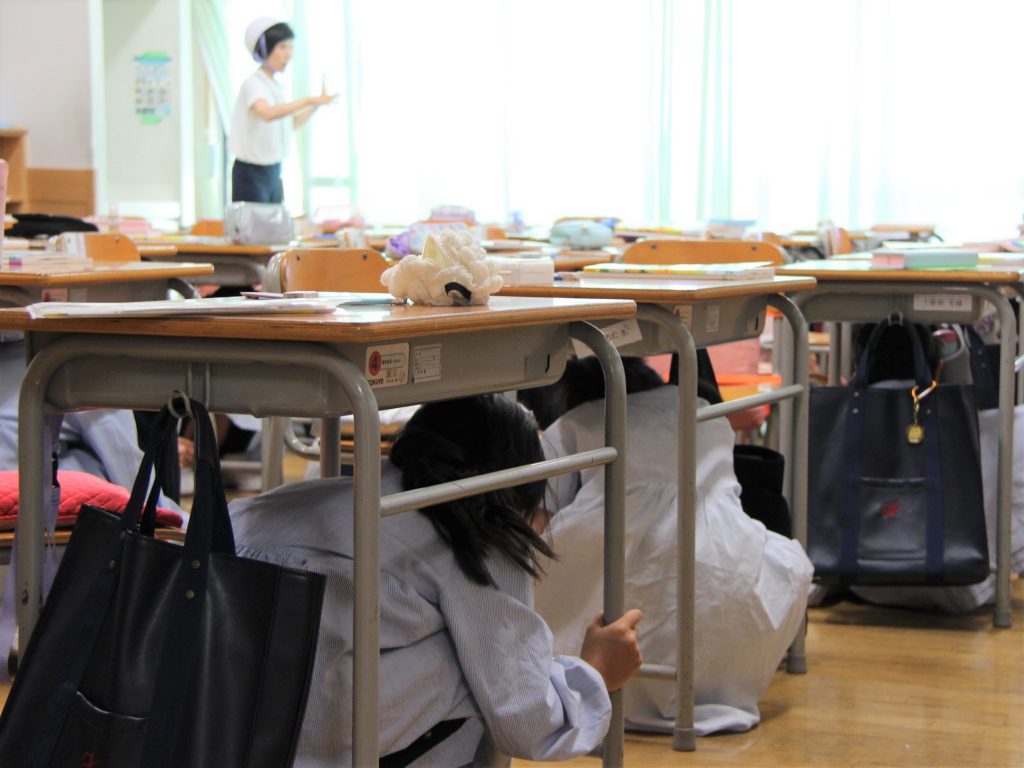 今日から2学期が始まり、校内に元気な子ども達の姿が戻ってきました。3時間目の途中、緊急地震速報(訓練放送)が流れ、速やかに身を守る体勢をとりました。その後、放送の指示に従い、防災頭巾をかぶり、人員確認をするまでの訓練をしました。いざという事態に備え、今後も訓練を繰り返し行っていきます。