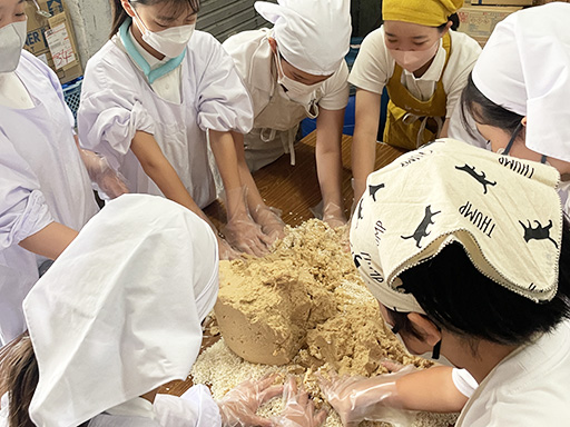 発酵パークに立ち寄り、味噌造り体験をしました。