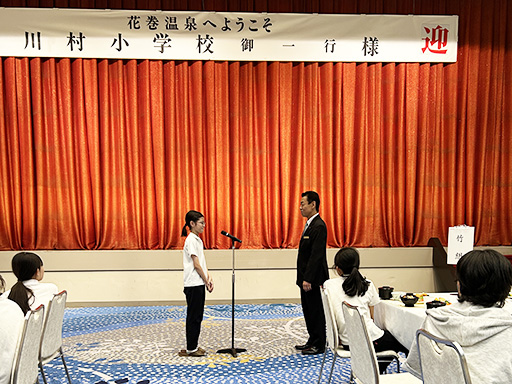 お世話になったホテルの方に、代表児童がご挨拶をしました。