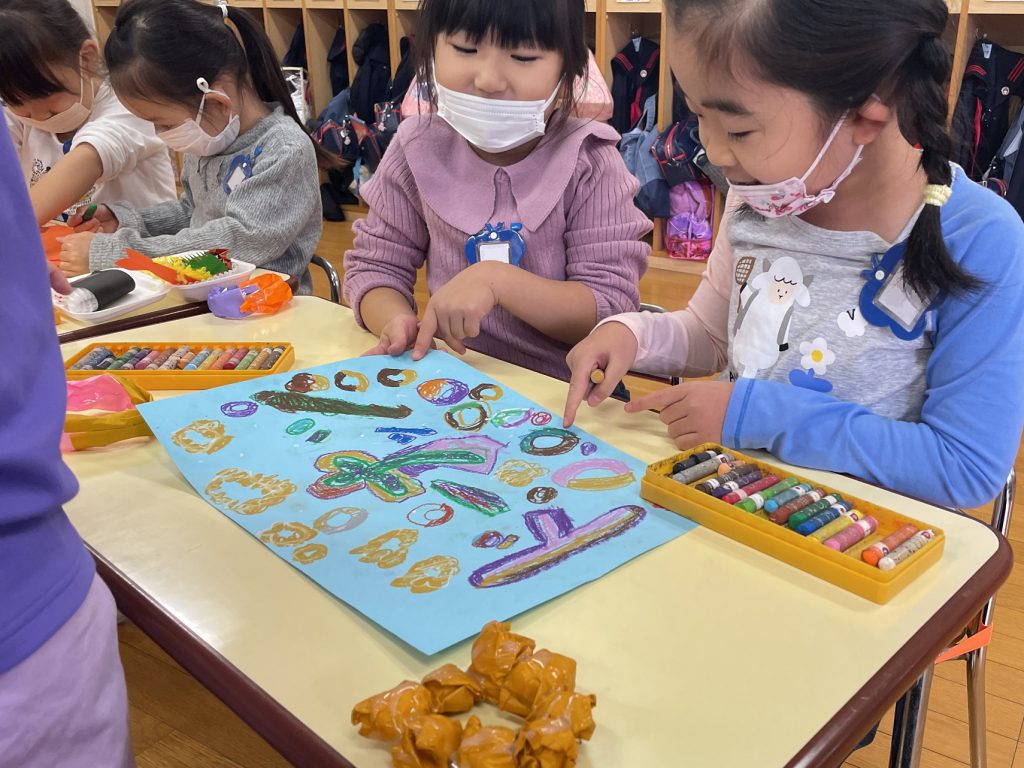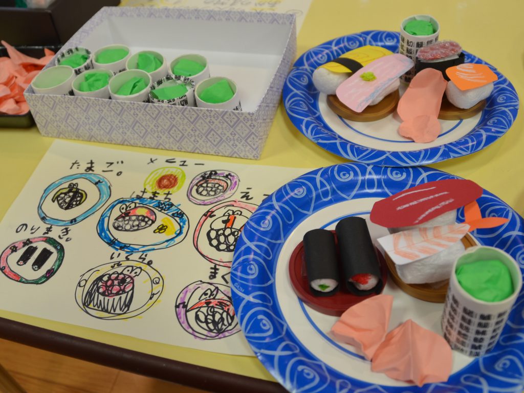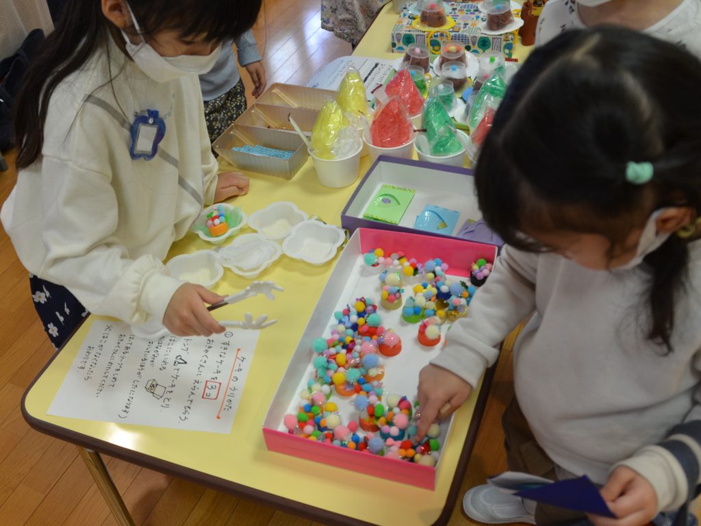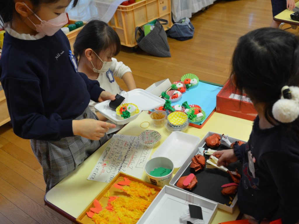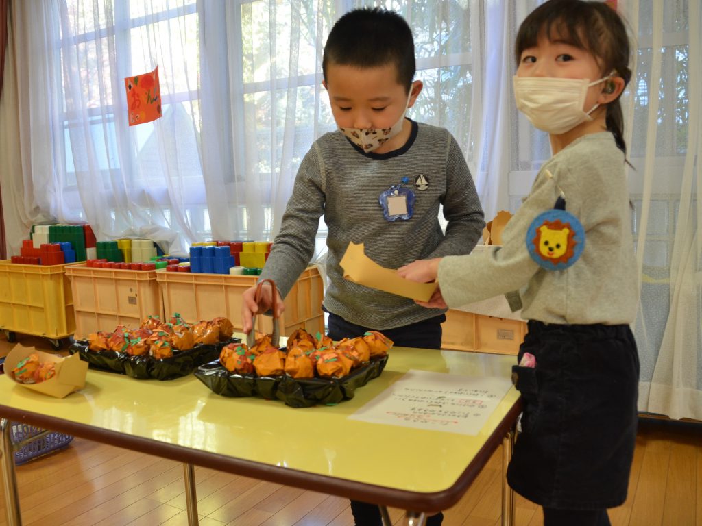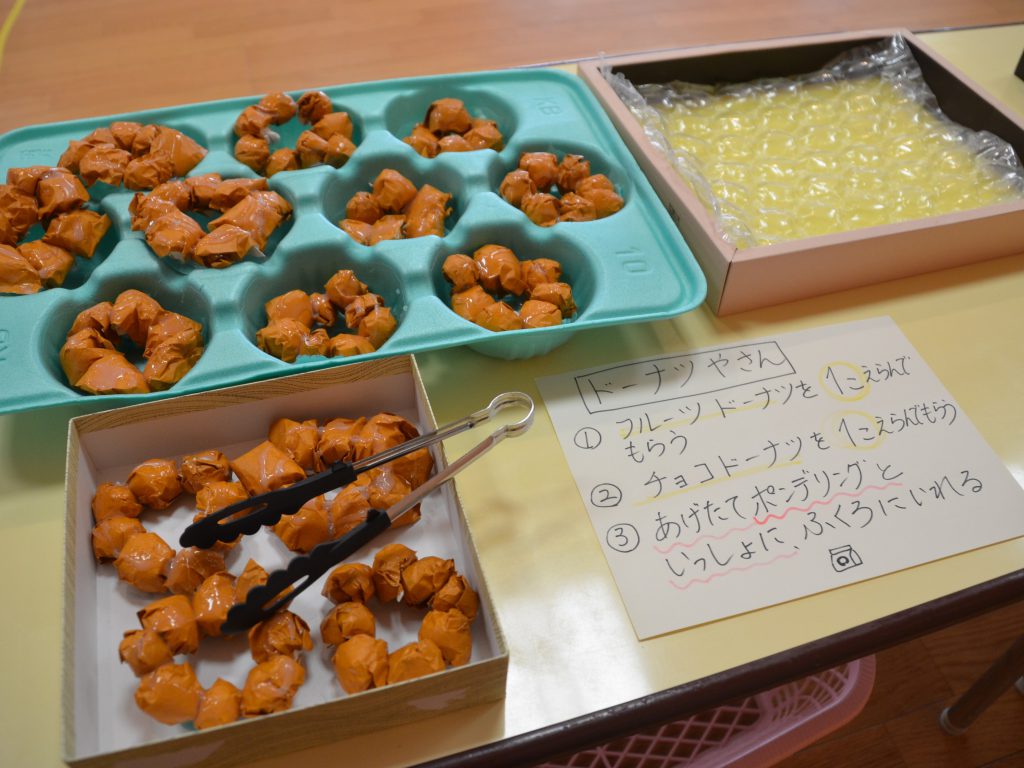 年長組のお姉さん、お兄さんから、年中組・年少組・つくし組のお友だちへ「おみせやさんごっこ」のお誘いがありました。みんなで考えたおみせやさん、いろいろな品物づくりが始まり、個性豊かな作品が仕上がりました。今年は、10店舗のおみせが出店し、当日は1人6枚のチケット(おかいものけん)を持ってお買い物を楽しみました。