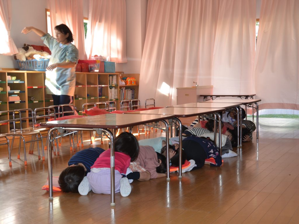 NEWS TOP NEWS 11月避難訓練 2023.11.27 11月避難訓練 令和5年11月16日(木) 緊急地震速報(訓練)が流れると、子どもたちは、すぐに避難体勢(防災頭巾をかぶる準備・机の下に避難・頭を守るだんごむしのポーズ)をとりました。その後、放送の指示でゆうぎ室に集まり、点呼をとりました。今回も、いざという時に身の安全を確保して、落ち着いて行動できるように取り組むことができました。 前の記事へ 次の記事へ 一覧に戻る 年代別 すべて 2025 2024 2023 2022 2021 2020 2019 2018 2017 2016 2015 2014 入試情報一覧