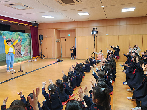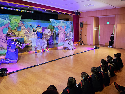 NEWS TOP NEWS クリスマス親子観劇会 2024.12.26 クリスマス親子観劇会 令和6年12月19日(木) クリスマス親子観劇会にて、劇団飛行船の「ロビンフットの冒険」を鑑賞しました。マスク人形劇は迫力があり、かっこいい場面や音響の演出で少しこわい場面にハラハラドキドキしました。みんなで、ロビンフットを応援することができました。 前の記事へ 次の記事へ 一覧に戻る 年代別 すべて 2025 2024 2023 2022 2021 2020 2019 2018 2017 2016 2015 2014 入試情報一覧