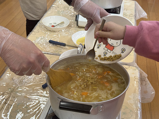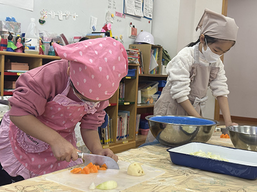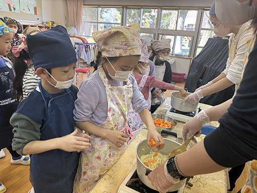 NEWS TOP NEWS 年長組 お料理教室 2025.03.21 年長組 お料理教室 令和7年3月7日(金) 年長組の子ども達が、お世話になった先生方と年中・年少組、つくし組のお友だちに、心を込めてカレーを作りました。具材を包丁で丁寧に切ってお鍋に入れ、「美味しくなーれ」とルーを溶かします。いい香りとともに全クラスのお友だちがゆうぎ室に集まり、みんなでいただきました。「あお組さんのカレー、美味しい!」と何杯もおかわりをして、お腹いっぱい食べました。年長組さん、美味しいカレーをごちそうさまでした! 前の記事へ 次の記事へ 一覧に戻る 年代別 すべて 2025 2024 2023 2022 2021 2020 2019 2018 2017 2016 2015 2014 入試情報一覧