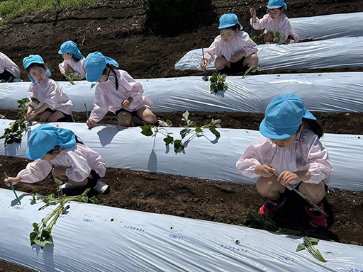 NEWS TOP NEWS 年長組 園外保育 2025.05.15 年長組 園外保育 令和7年5月7日(水) 年長組は、さつまいもの苗付け遠足へ行きました。畑の方に苗を見せていただくと、「これがお芋になるの?」と不思議に思いながらも、一株一株丁寧に植えました。 広い畑のお庭でお弁当をいただき、散策も楽しみました。 前の記事へ 次の記事へ 一覧に戻る 年代別 すべて 2025 2024 2023 2022 2021 2020 2019 2018 2017 2016 2015 2014 入試情報一覧