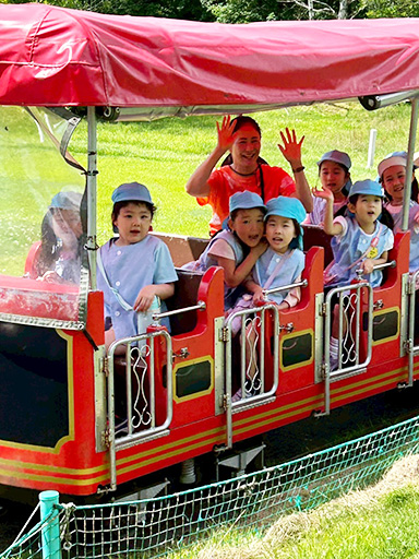 白樺リゾート池の平ファミリーランドへ出かけました。アスレチックで遊んで、森林鉄道に乗りました。
