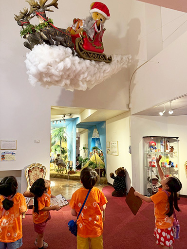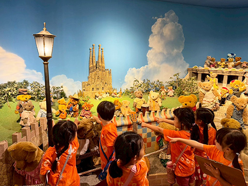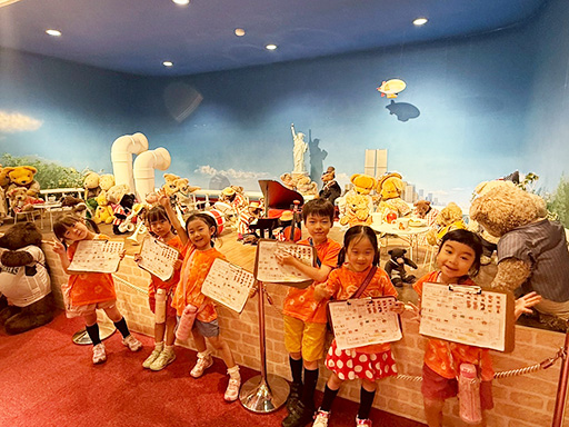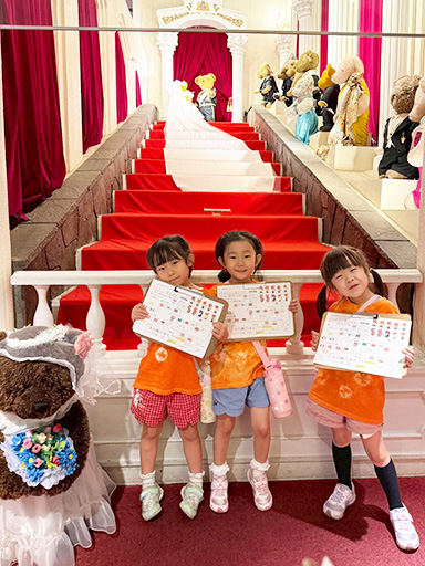 午後は、みんなで染めたシャツに着替えて、蓼科テディベア美術館へ。テディベア探しゲームで楽しみました。
