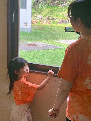 山荘の窓から、鹿さんが見えました。