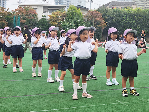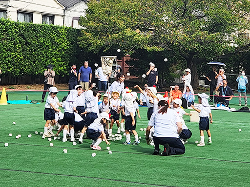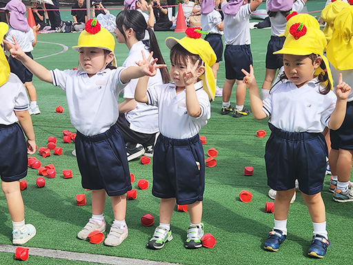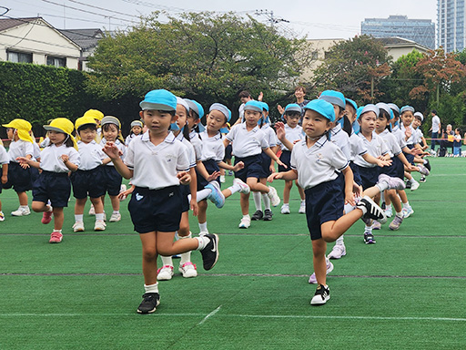 学園のグラウンドで、キンダーファミリーパーティー(運動会)が行われました。