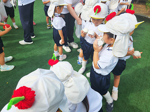 なんと、赤組・白組の玉の数が同数で引き分けでした!