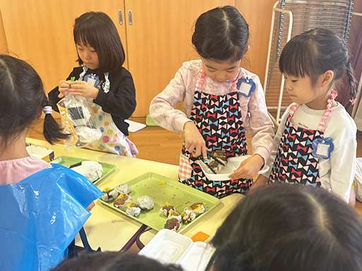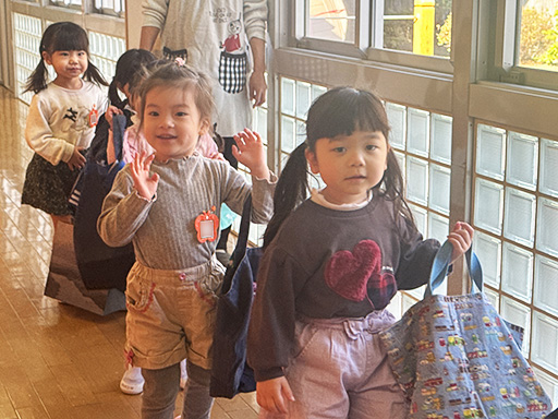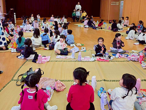 閉店後は、年長組さんがお友達を迎えに行って、みんなでお弁当をいただきました。