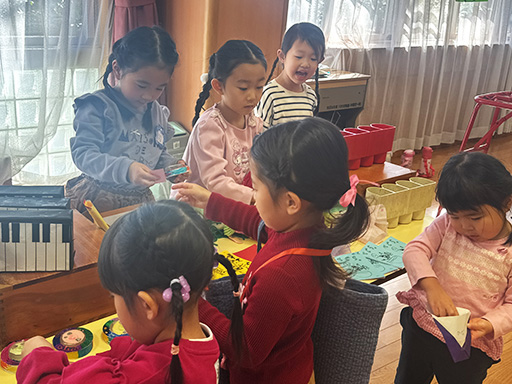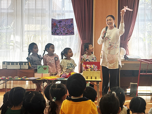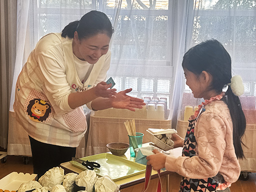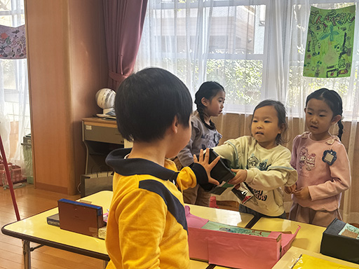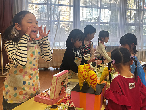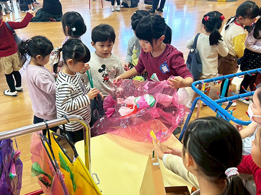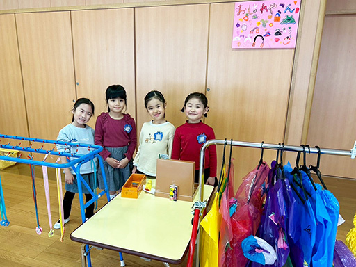いよいよ年長組のおみせやさんごっこが始まります。小さなお客様を、笑顔でお迎えしました。