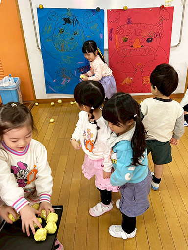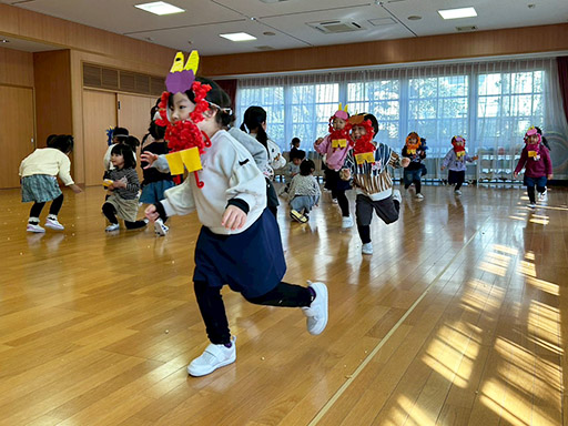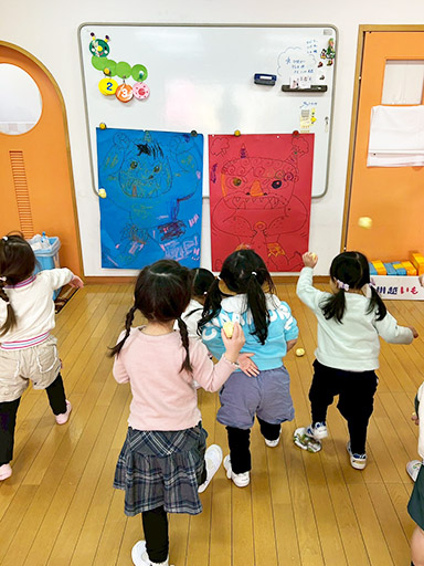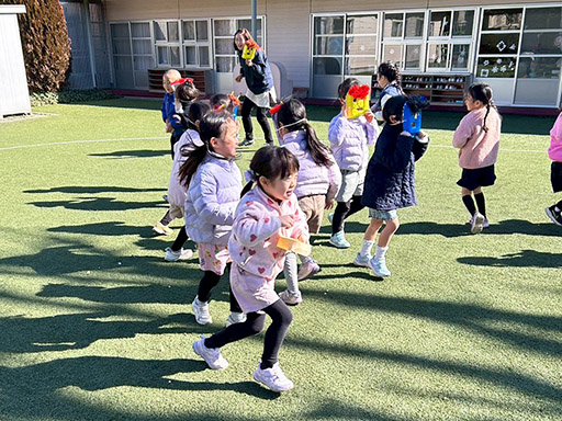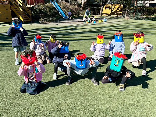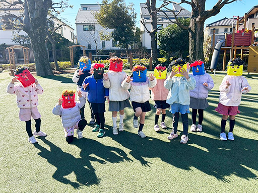NEWS TOP NEWS 節分 2026.03.06 節分 令和8年2月3日(火) 木々からつららのように水が凍っていた、寒い朝でした。 今日は節分。手作りの鬼のお面をつけて、「おにはそと! ふくはうち!」と元気な声で豆をまく姿があちらこちらで見られました。 つくし組(満3歳児) 年少組 年中組 年長組 前の記事へ 一覧に戻る 年代別 すべて 2026 2025 2024 2023 2022 2021 2020 2019 2018 2017 2016 2015 2014 入試情報一覧