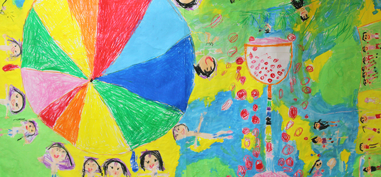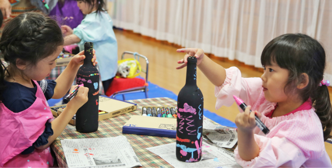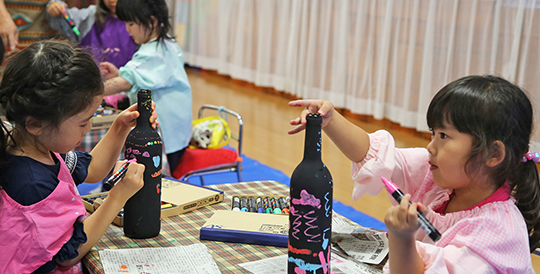 いろいろな素材に出会い、作るよろこび、楽しさを知ってもらうことを一番に考え、粘土、版画、陶芸、工作などの制作に取り組みます。