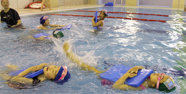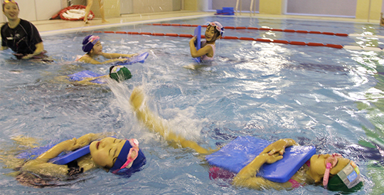 水泳未経験から得意とする受講生まで誰もが楽しめる水泳レッスンです。卒園時にはクロール25mの完泳と背泳ぎへの挑戦をめざします。これらの経験が、小学校水泳での基礎力となり、記録アップへとつながります。体の使い方や水の特性を知り、身を守る技術も身に付くプログラムとなっています。目標を達成する喜びをひとりひとりが持てるようKITAJIMAQUATICSが指導いたします。