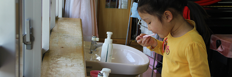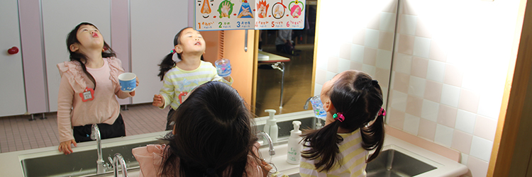 - 自分で制服から普段着に着替え、ロッカーに片づけたあと、手洗いをすませます。