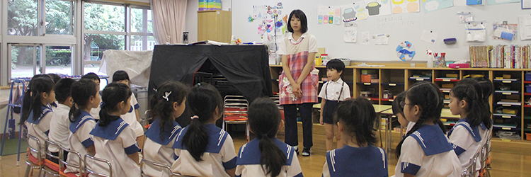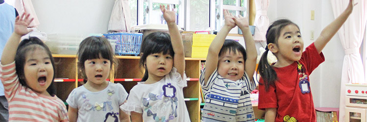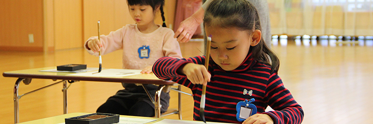 - 歌、製作活動、体操教室、リズム遊び、お習字(年長)、英語(年長)、自由活動など、表現する楽しさ、豊かな感性を育みます。